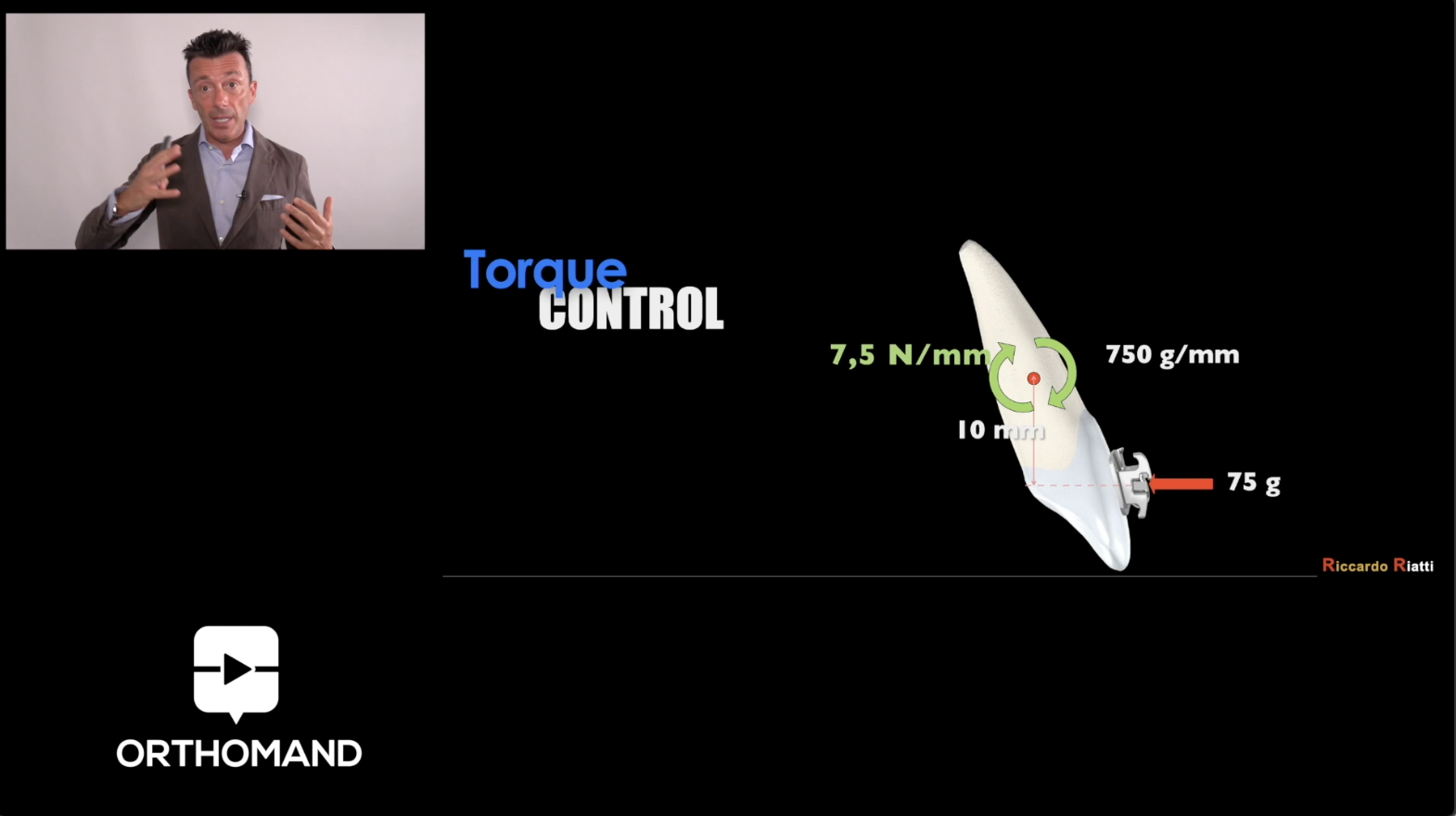Ogni ortodontista esperto sa che il controllo del torque degli incisivi è uno degli obiettivi più importanti ma anche più impegnativi da raggiungere. Spesso la quantità di torque trasferita ai denti tramite l’apparecchiatura Straight-Wire non è sufficiente a garantire un risultato adeguato. Il Dr. Riatti ci mostrerà come determinare in maniera precisa  la posizione finale degli incisivi, individualizzandone per ogni paziente il torque finale. All’interno del corso viene mostrato anche un video sulle manovre indispensabili per inserire il torque necessario direttamente sull’arco ortodontico in tecnica Straight-Wire.